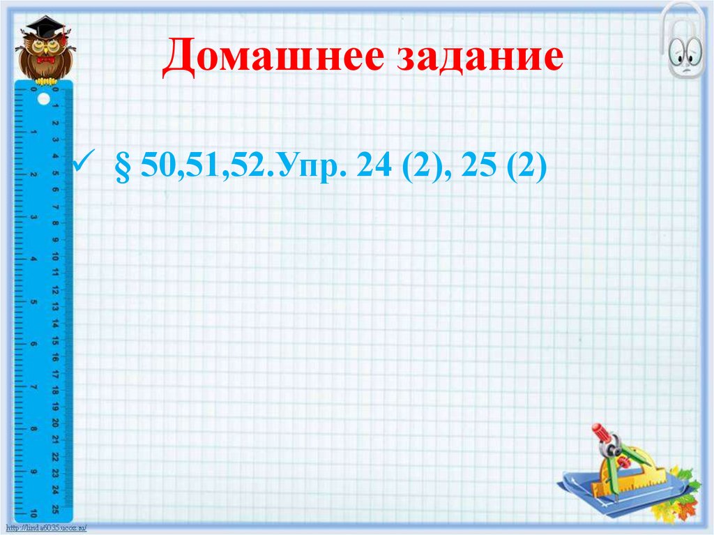 Домашнее задание§ 50,51,52.Упр. 24 (2), 25 (2)