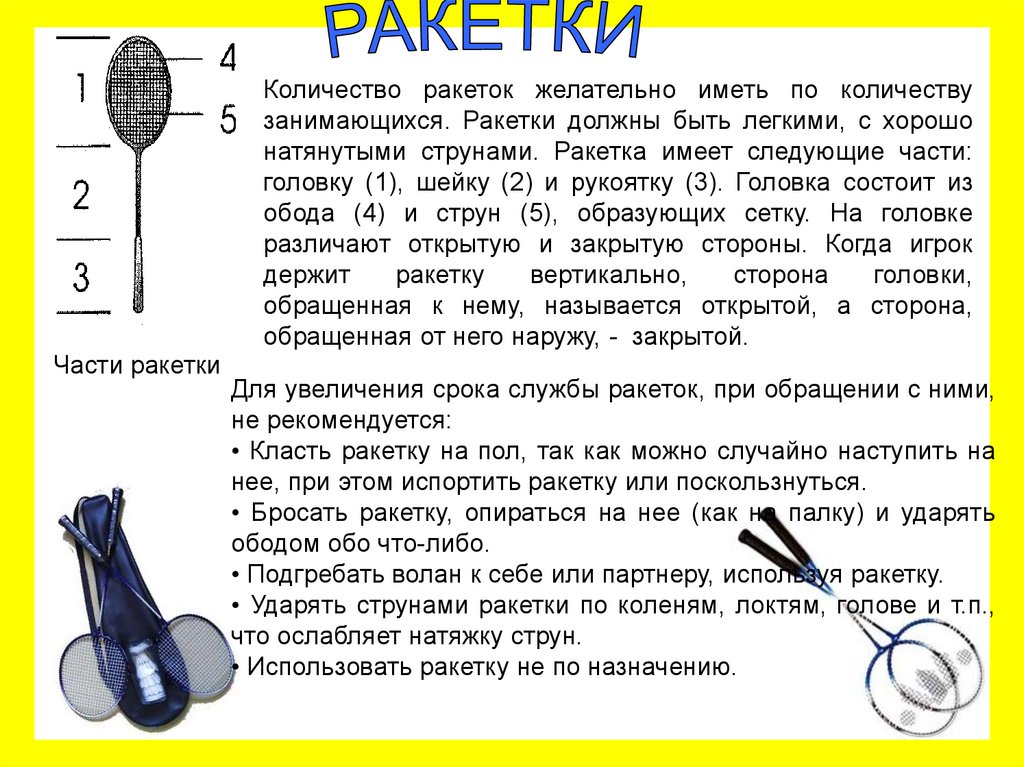 Части ракеткиКоличество ракеток желательно иметь по количеству