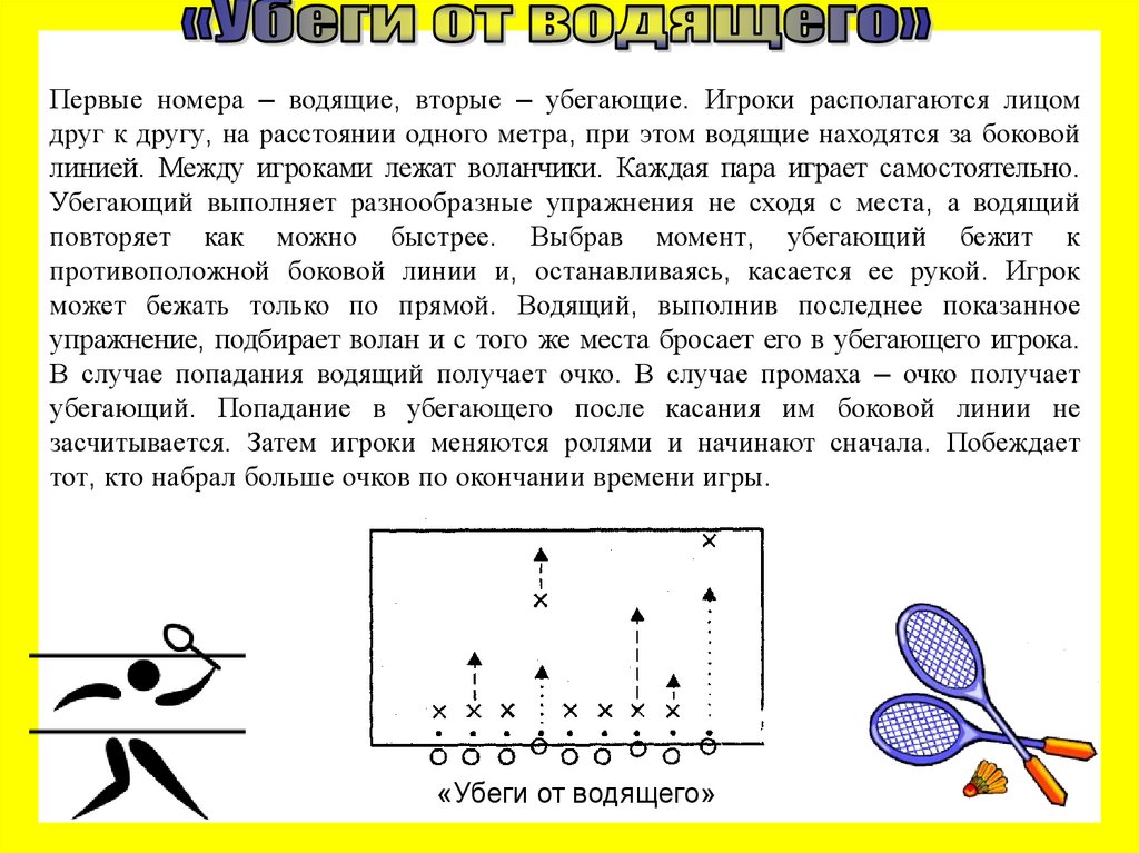 упражнение, подбирает волан и с того же места бросает его в убегающего игрока.
