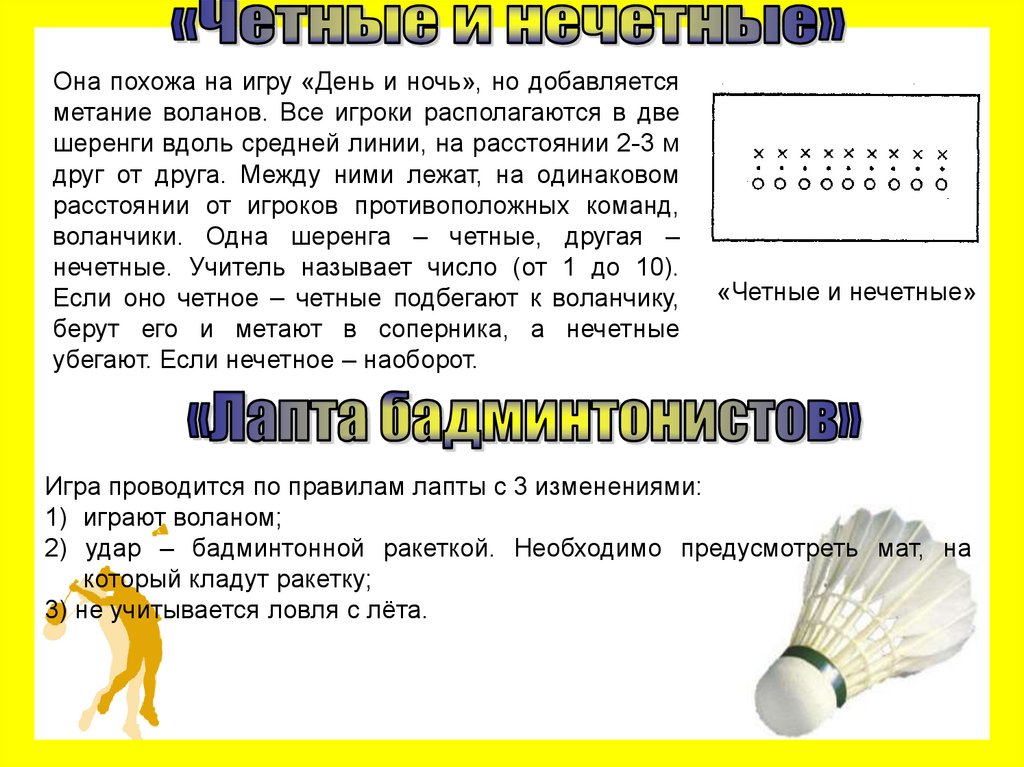 которой располагается команда. Подобрав или поймав волан, второй игрок