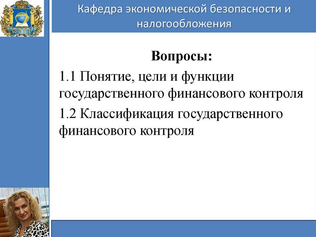 Кафедра экономической безопасности иналогообложения