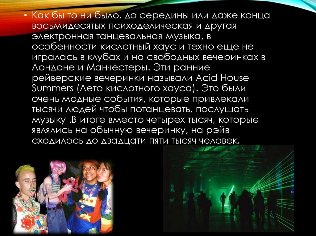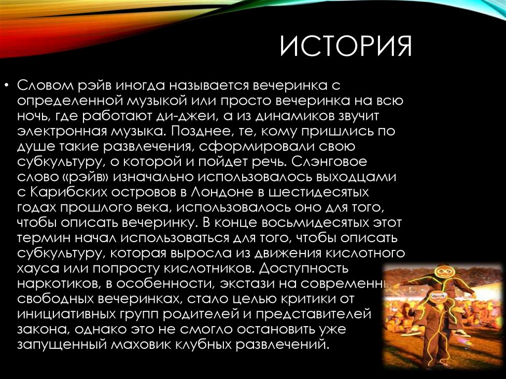ИСТОРИЯ• Словом рэйв иногда называется вечеринка с