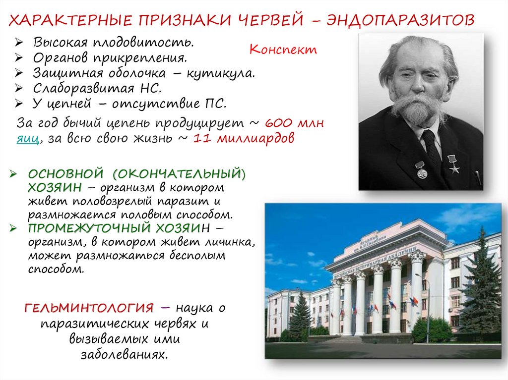 гельминтологической науки. Академик.