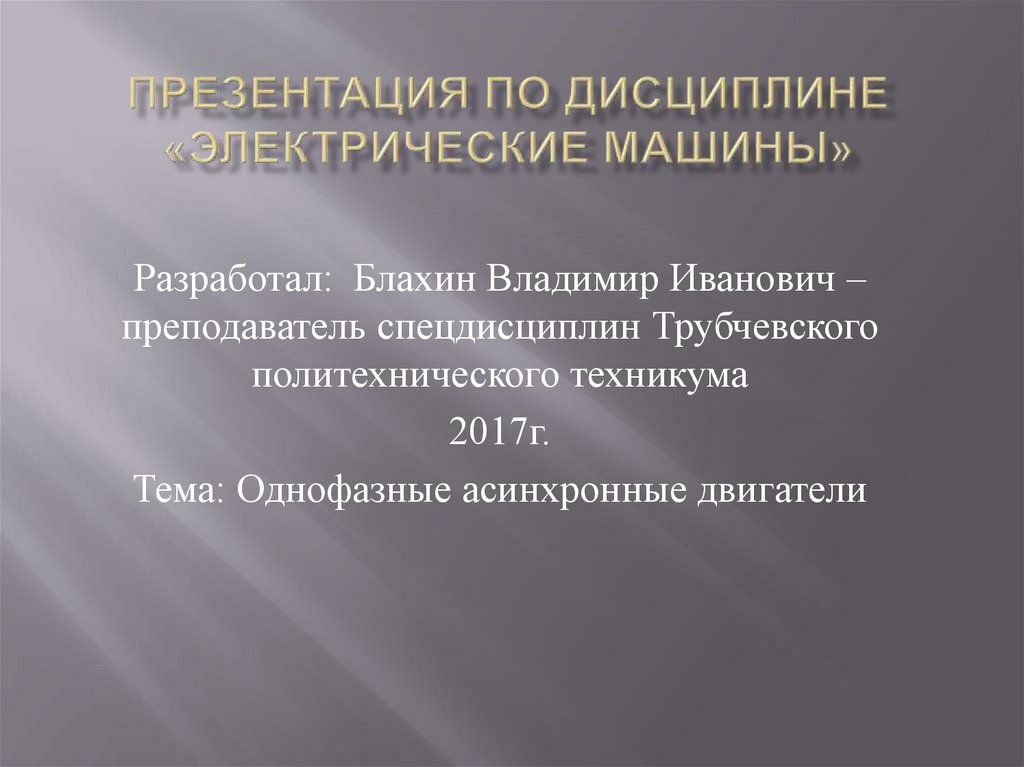Разработал: Блахин Владимир Иванович –преподаватель спецдисциплин Трубчевского
