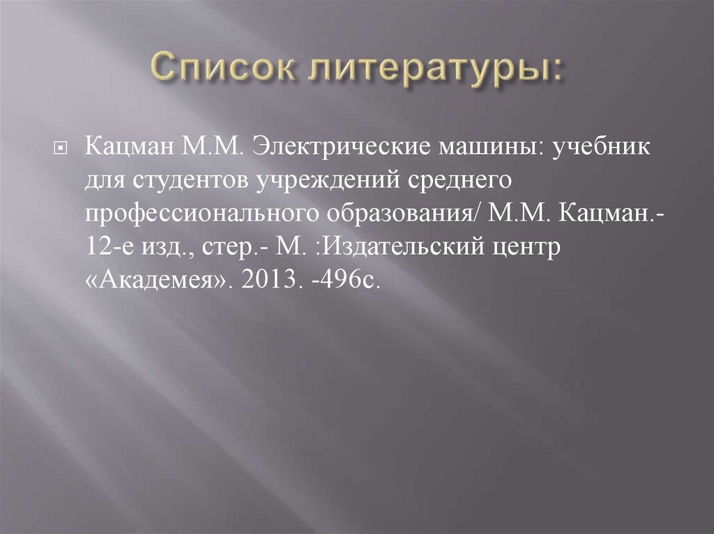 Кацман М.М. Электрические машины: учебникдля студентов учреждений среднего