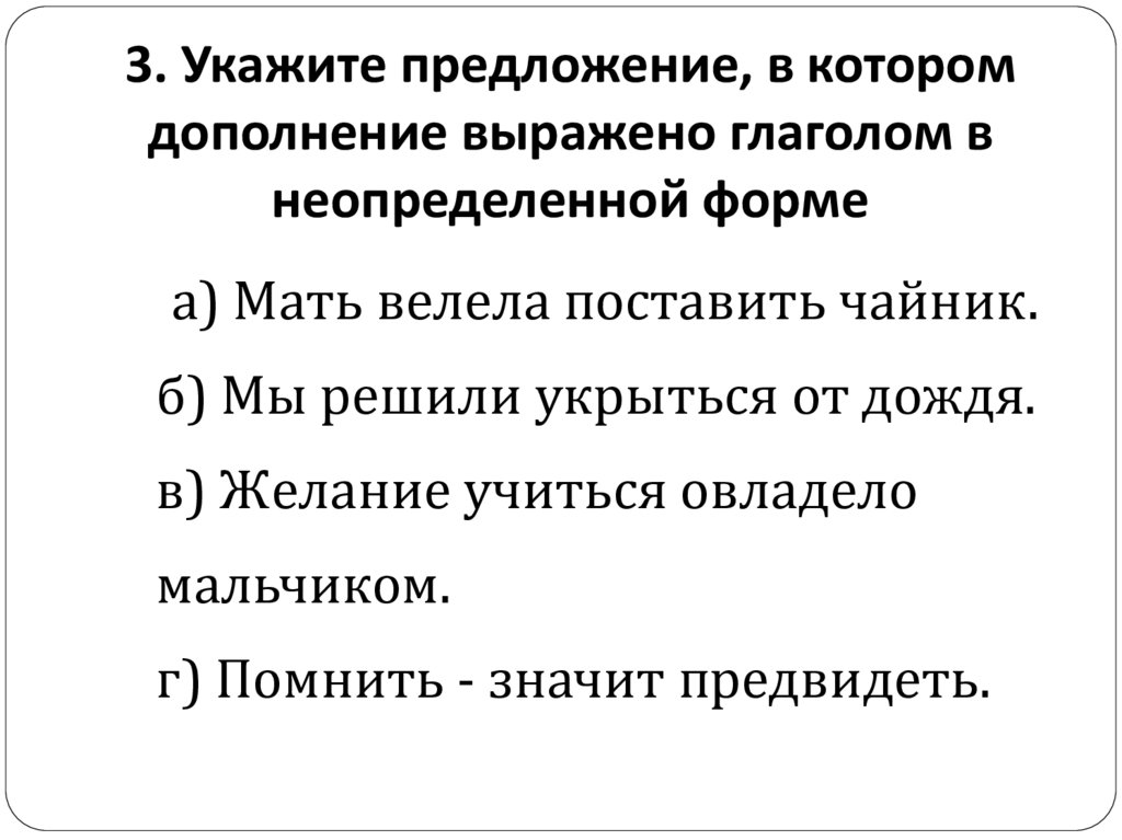 3. Укажите предложение, в которомдополнение выражено глаголом в