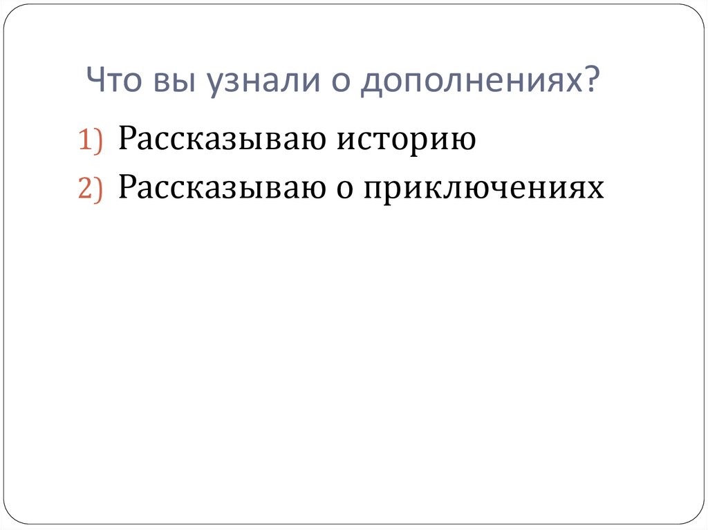 Что вы узнали о дополнениях?1) Рассказываю историю
