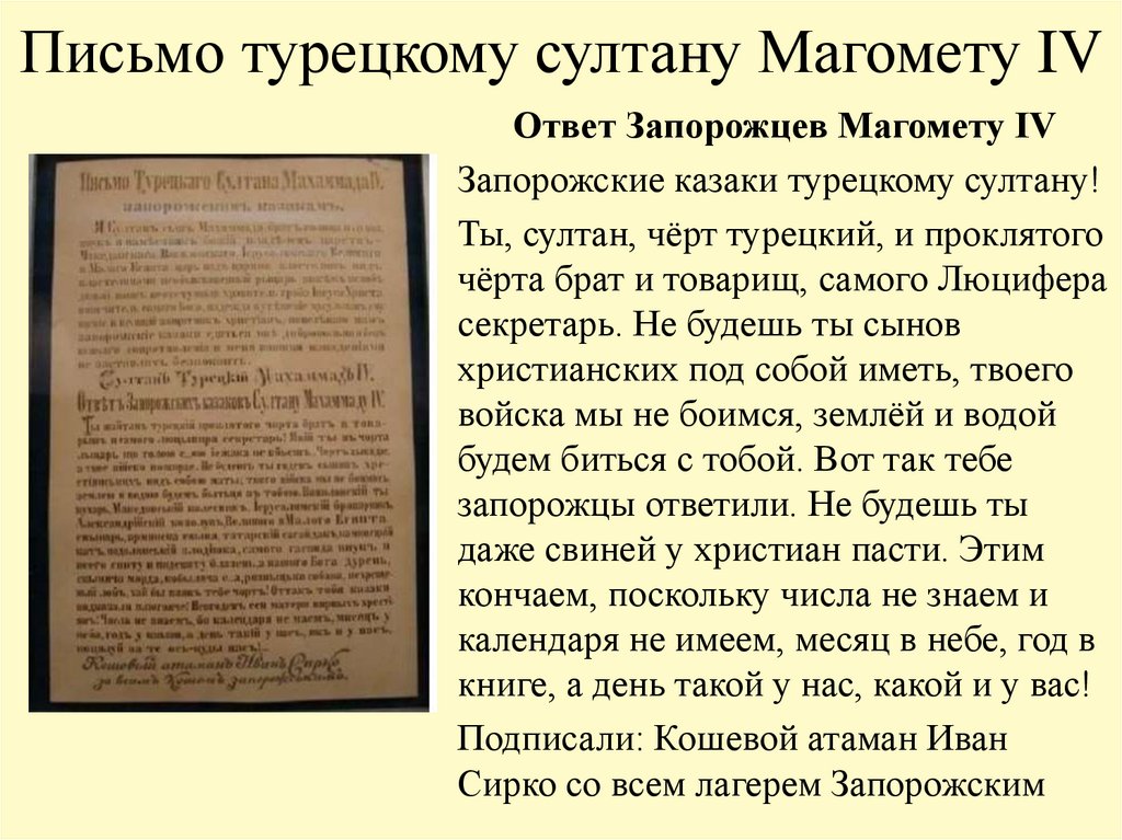 запорожцы ответили. Не будешь ты