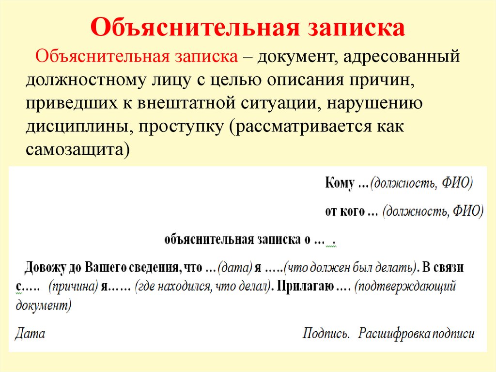 Объяснительная запискаОбъяснительная записка – документ, адресованный