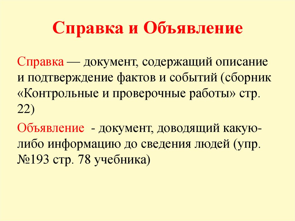 Справка и ОбъявлениеСправка — документ, содержащий описание