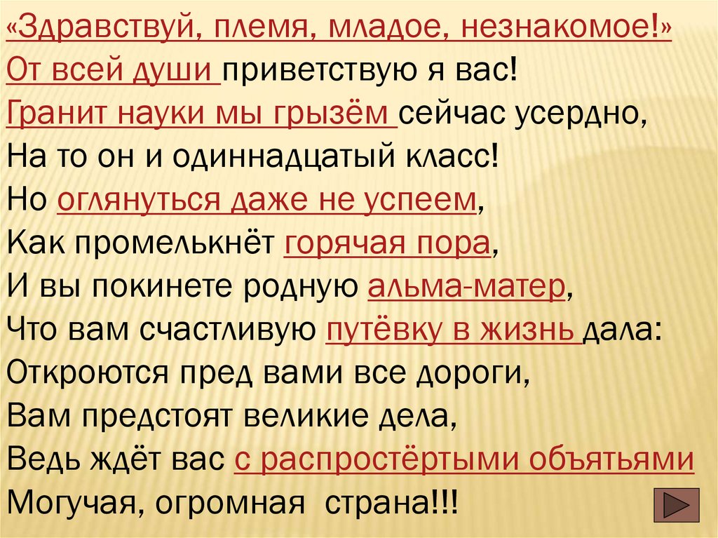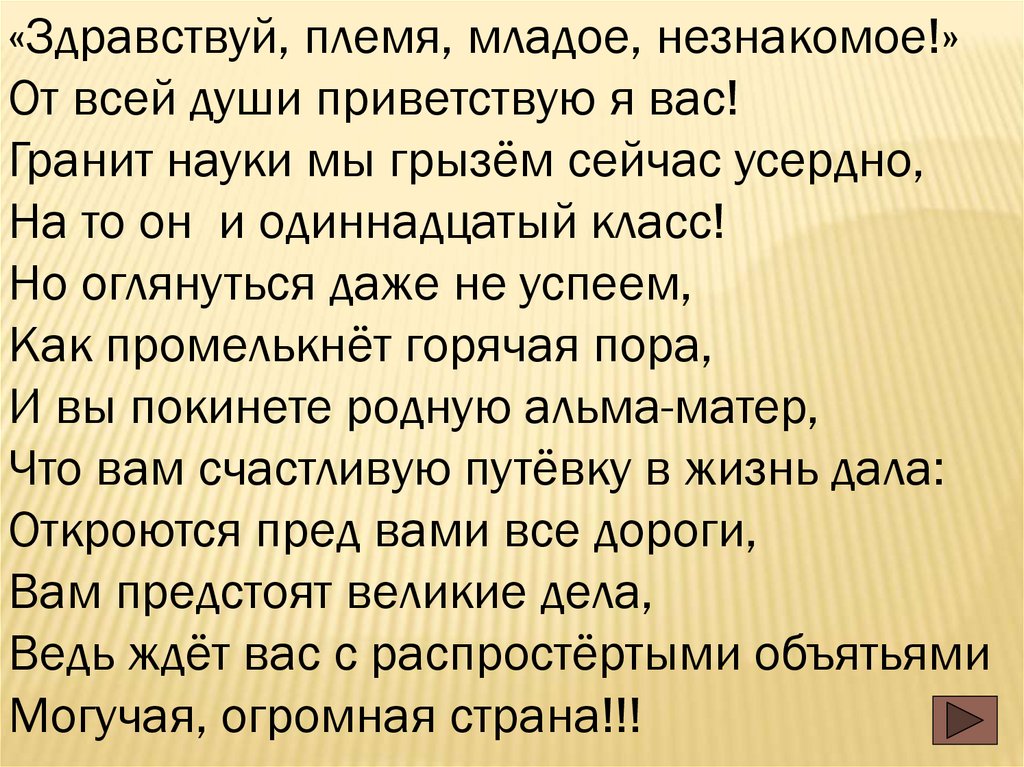 «Здравствуй, племя, младое, незнакомое!»От всей души приветствую я вас!