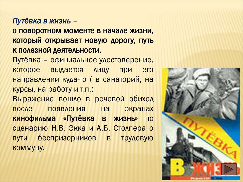 Путёвка в жизнь –о поворотном моменте в начале жизни,