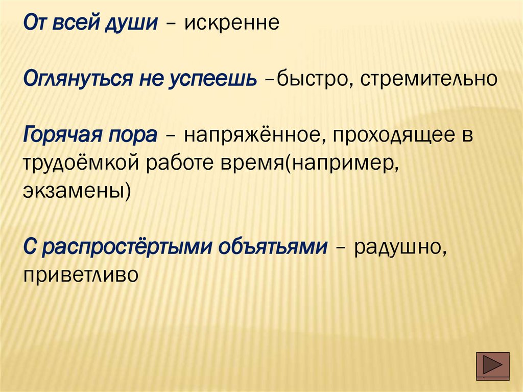 От всей души – искреннеОглянуться не успеешь –быстро, стремительно