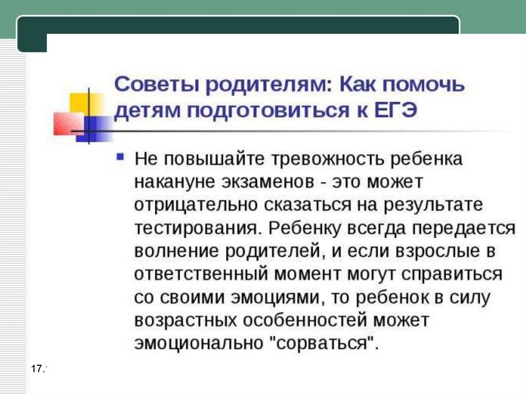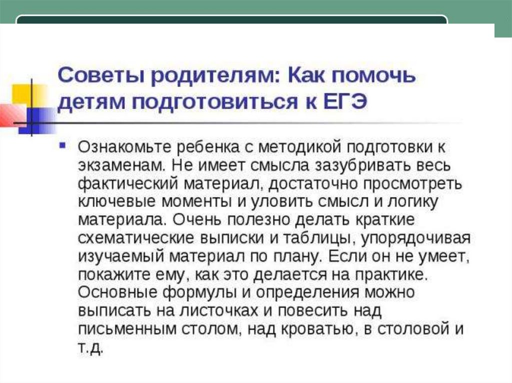 Психологические рекомендации родителям по подготовке учащихся к ГИА