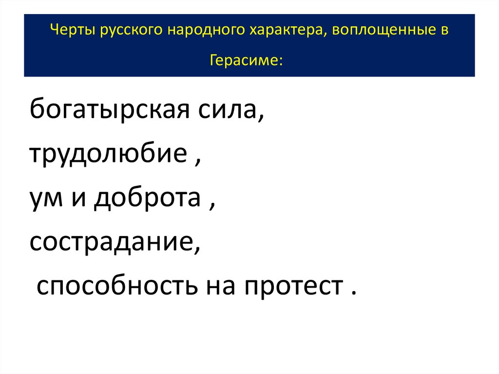 Черты русского народного характера, воплощенные вГерасиме: