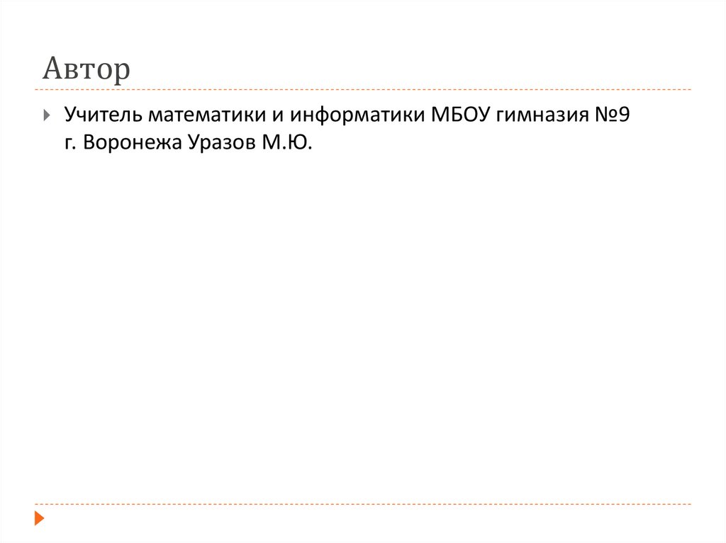 АвторУчитель математики и информатики МБОУ гимназия №9