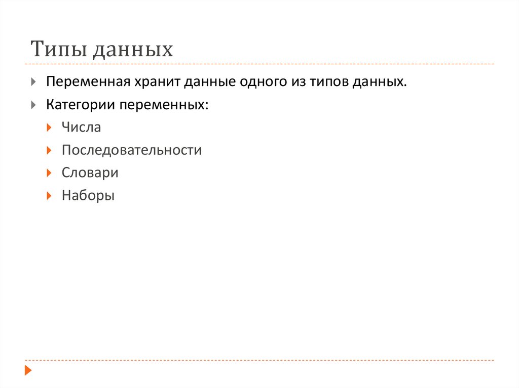 Переменные и типы переменных8 класс. Программирование на языке Python