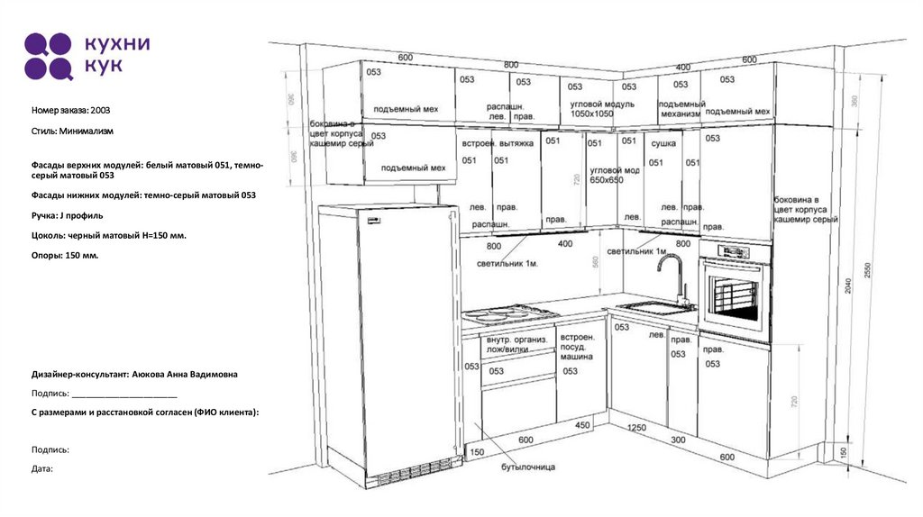 Фасады верхних модулей: белый матовый 051, темносерый матовый 053