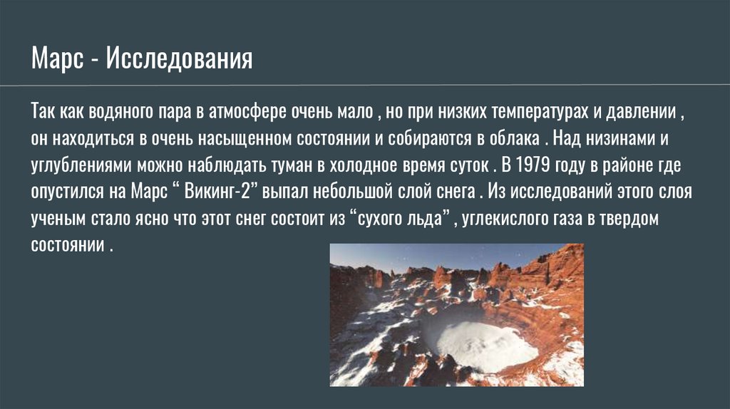 опустился на Марс “ Викинг-2” выпал небольшой слой снега . Из исследований этого слоя