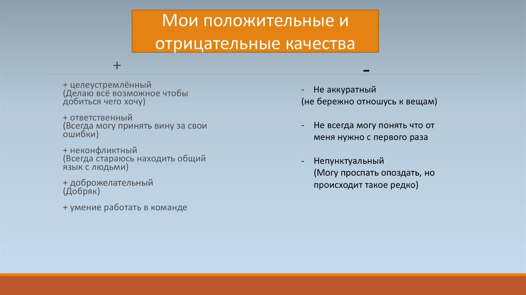 Мои положительные иотрицательные качества