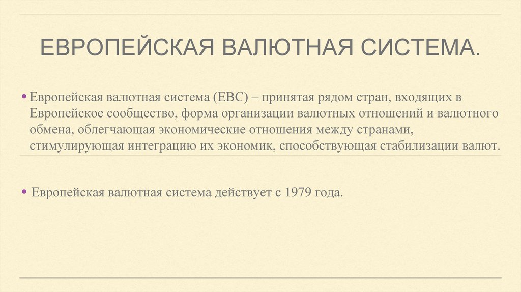 • Европейская валютная система действует с 1979 года.