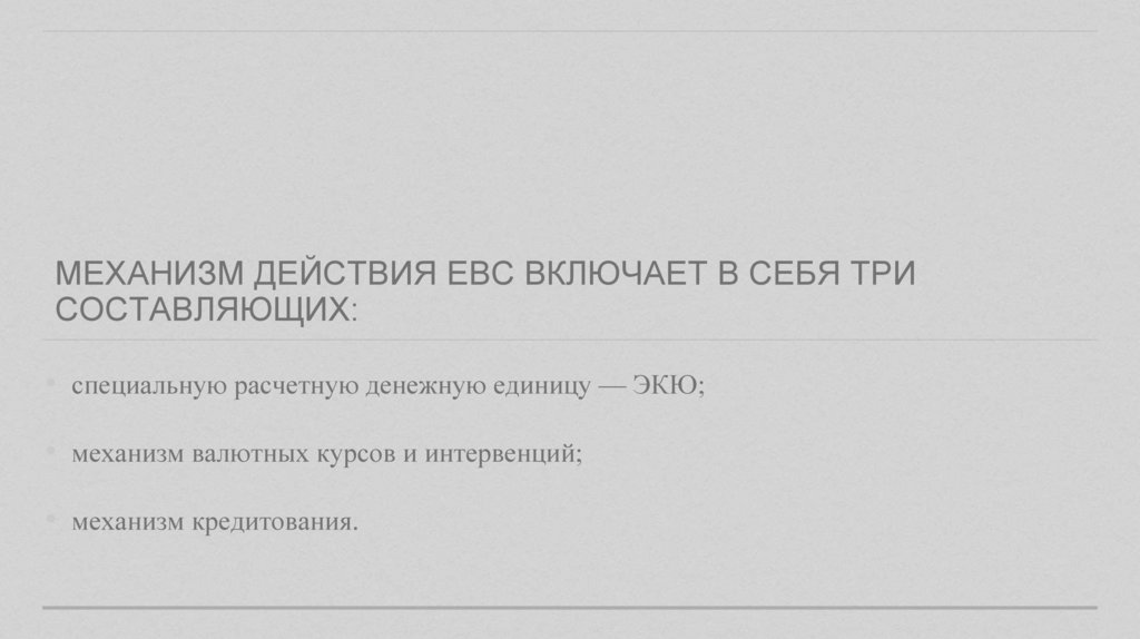 ЕВРОПЕЙСКАЯ ВАЛЮТНАЯ СИСТЕМА.ОСНОВНЫЕ ЭТАПЫ РАЗВИТИЯ ЕВС, МЕХАНИЗМ