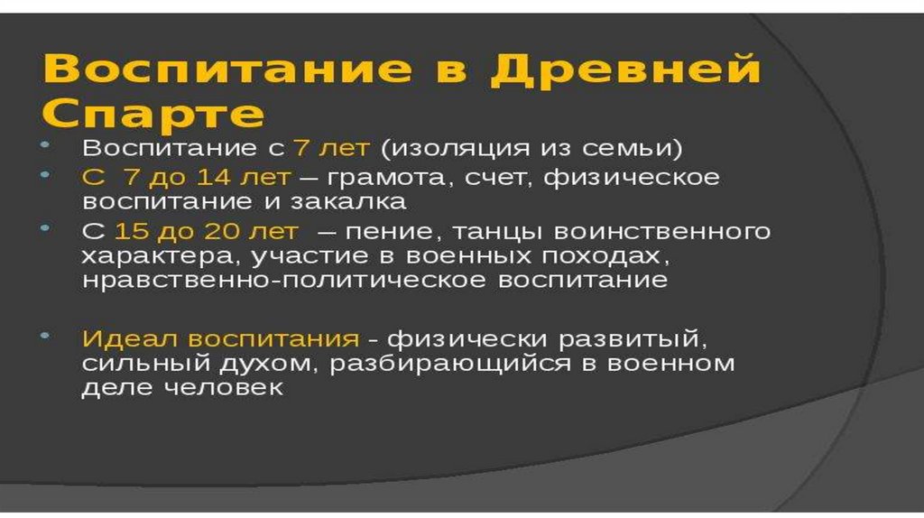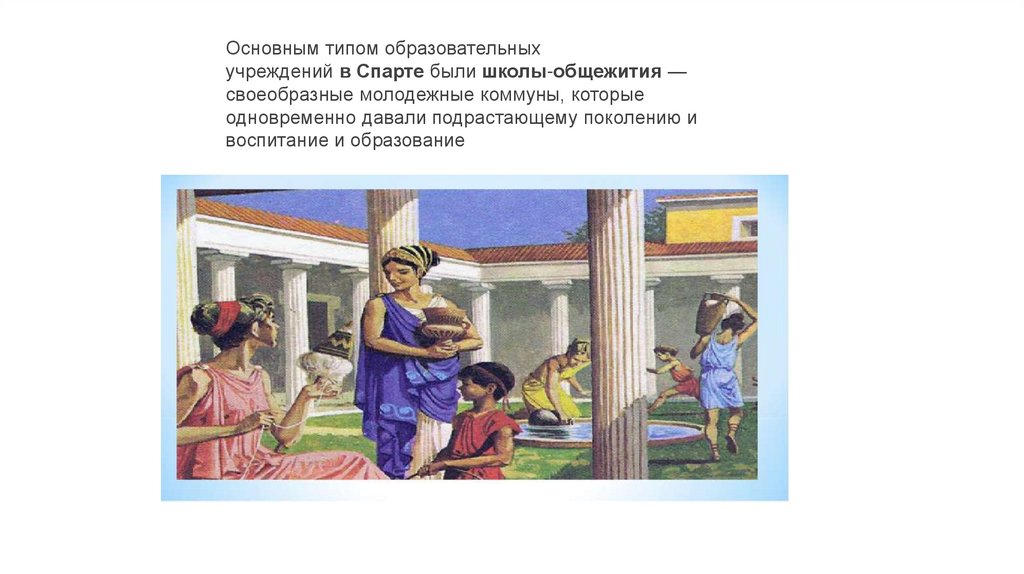 Основным типом образовательныхучреждений в Спарте были школы-общежития —