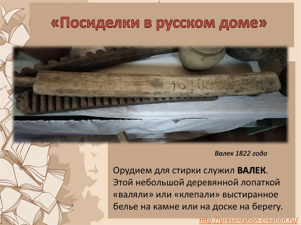 Валек 1822 годаОрудием для стирки служил ВАЛЕК.