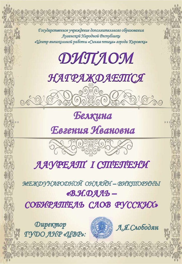 Белкина Евгения Ивановна. Диплом