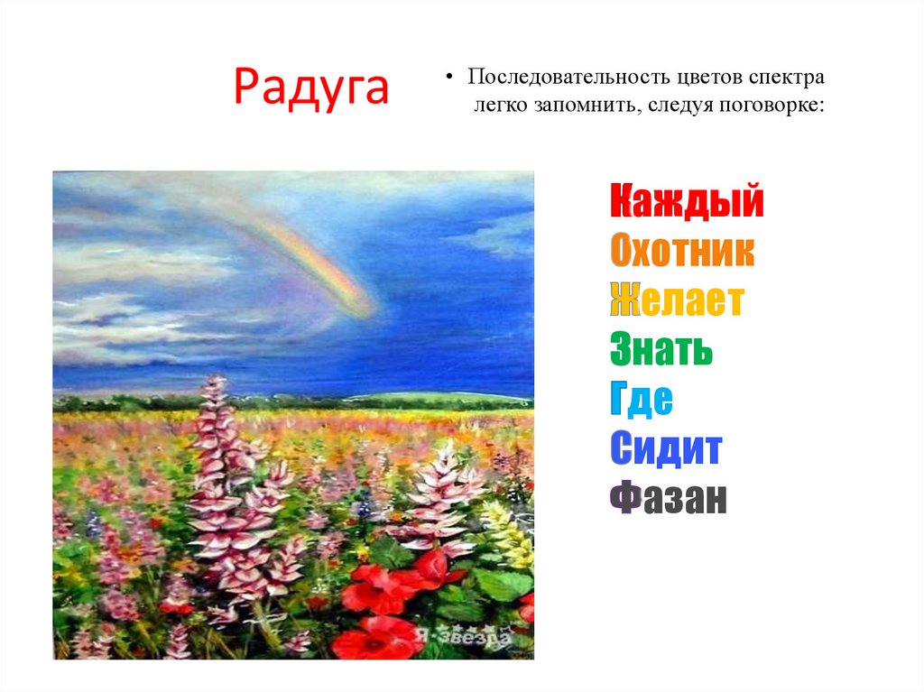 Радуга• Последовательность цветов спектра