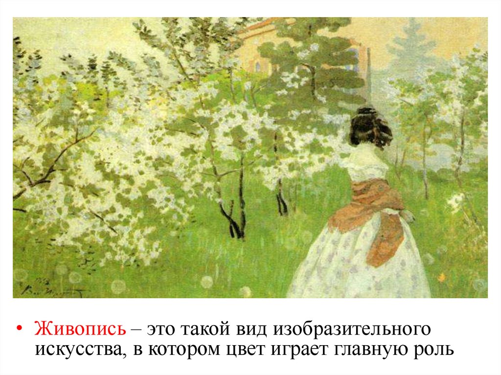 • Живопись – это такой вид изобразительногоискусства, в котором цвет играет главную роль