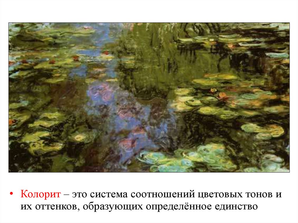 • Колорит – это система соотношений цветовых тонов иих оттенков, образующих определённое единство