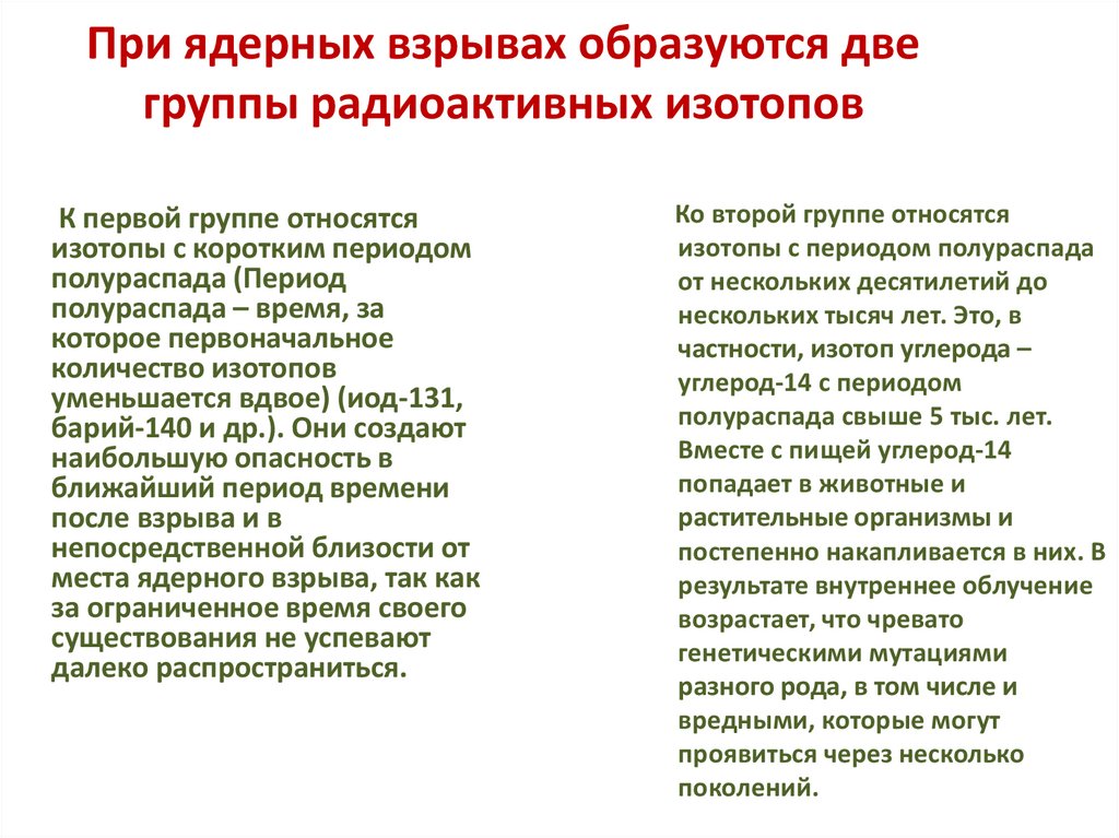 При ядерных взрывах образуются двегруппы радиоактивных изотопов