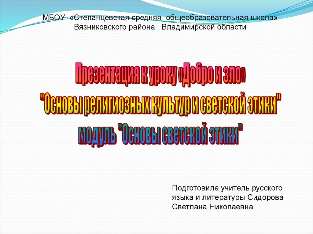 МБОУ «Степанцевская средняя общеобразовательная школа»Вязниковского района Владимирской области