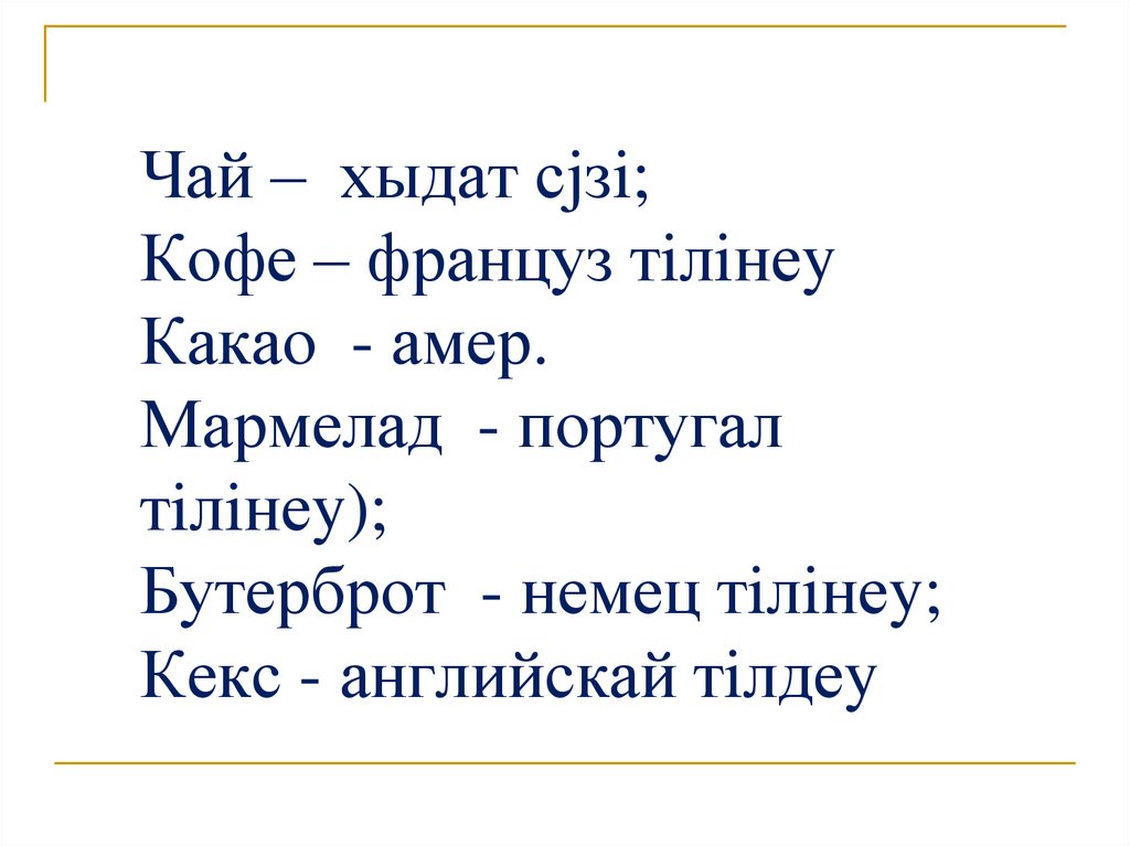 Чай – хыдат сjзi;Кофе – француз тiлiнеy