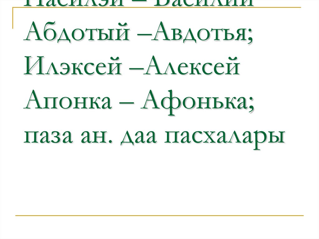 Пасилэй – ВасилийАбдотый –Авдотья;