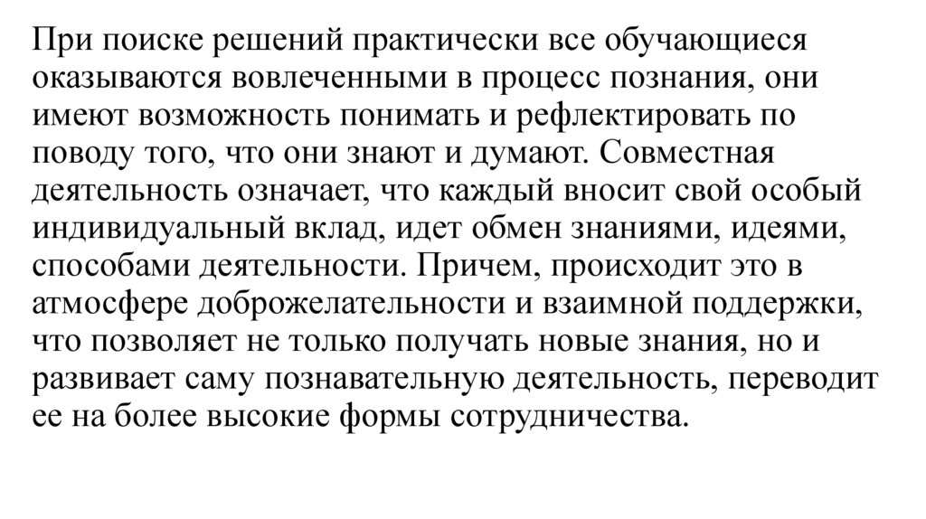 При поиске решений практически все обучающиесяоказываются вовлеченными в процесс познания, они