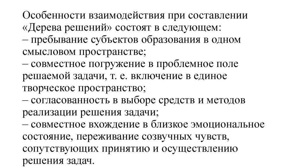 Особенности взаимодействия при составлении«Дерева решений» состоят в следующем: