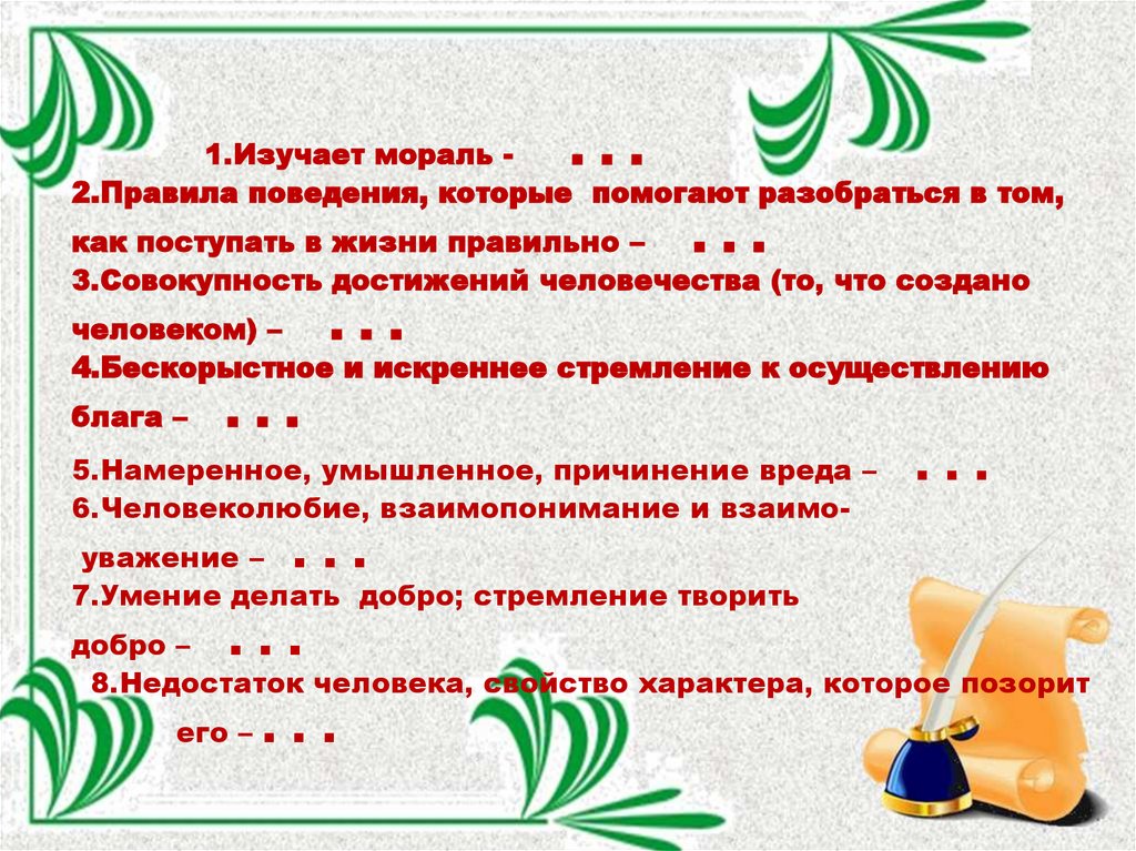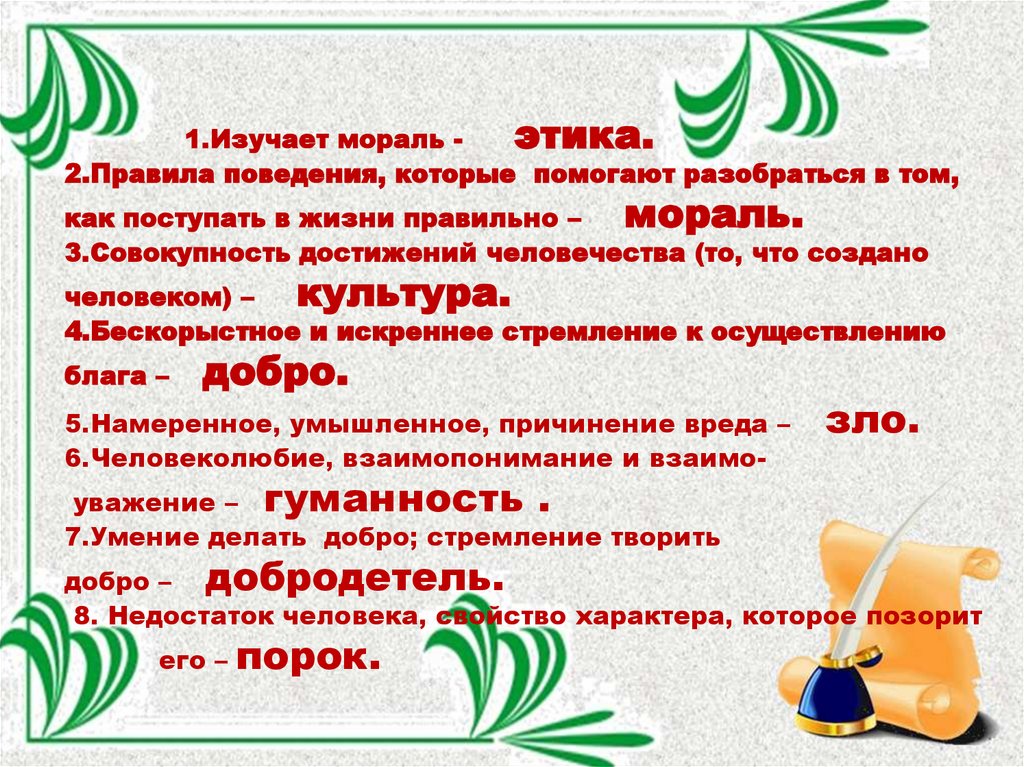 1.Изучает мораль ...2.Правила поведения, которые помогают разобраться в том,
