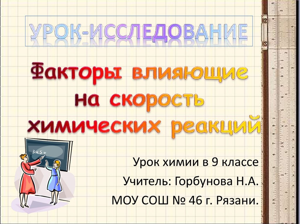 Урок-исследование: факторы влияющие на скорость химических реакций