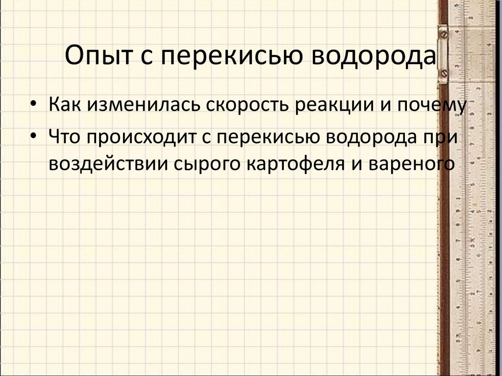 Опыт с перекисью водорода• Как изменилась скорость реакции и почему