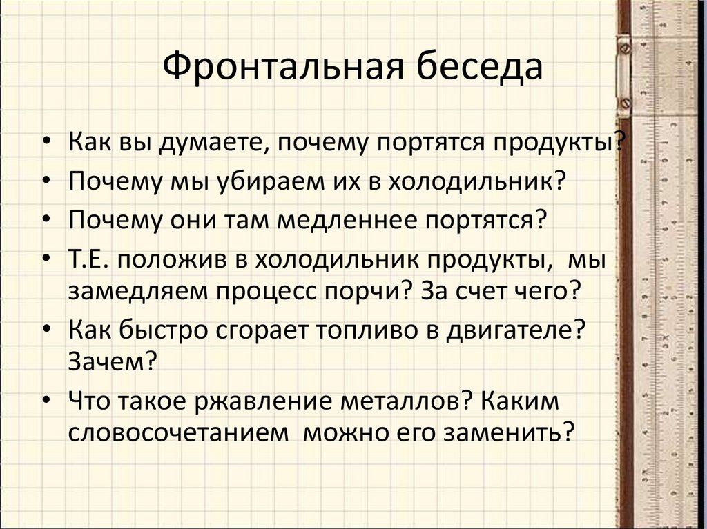 Фронтальная беседаКак вы думаете, почему портятся продукты?