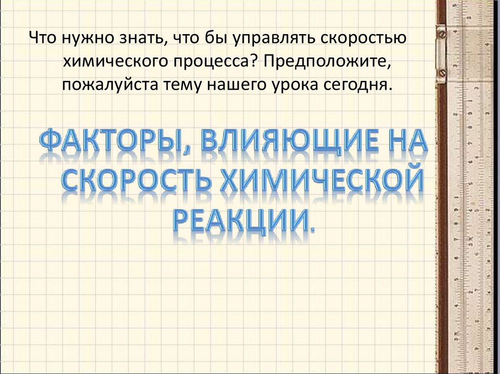 Что нужно знать, что бы управлять скоростьюхимического процесса? Предположите,