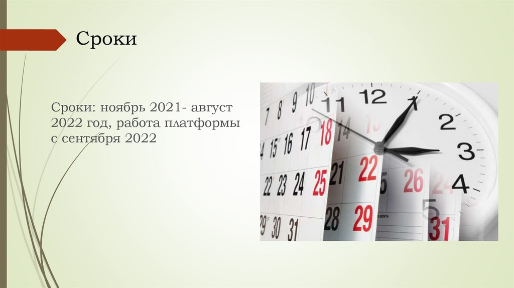СрокиСроки: ноябрь 2021- август