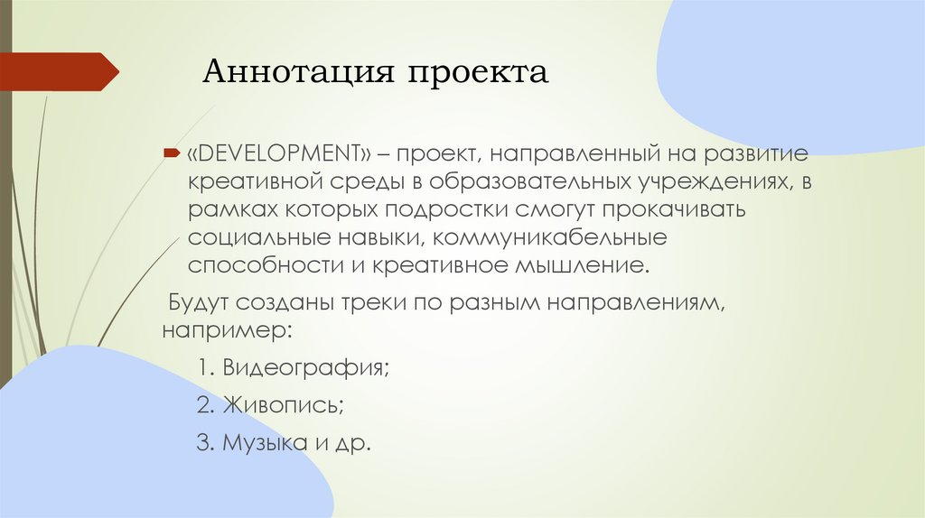 Аннотация проекта«DEVELOPMENT» – проект, направленный на развитие