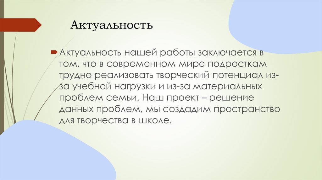АктуальностьАктуальность нашей работы заключается в