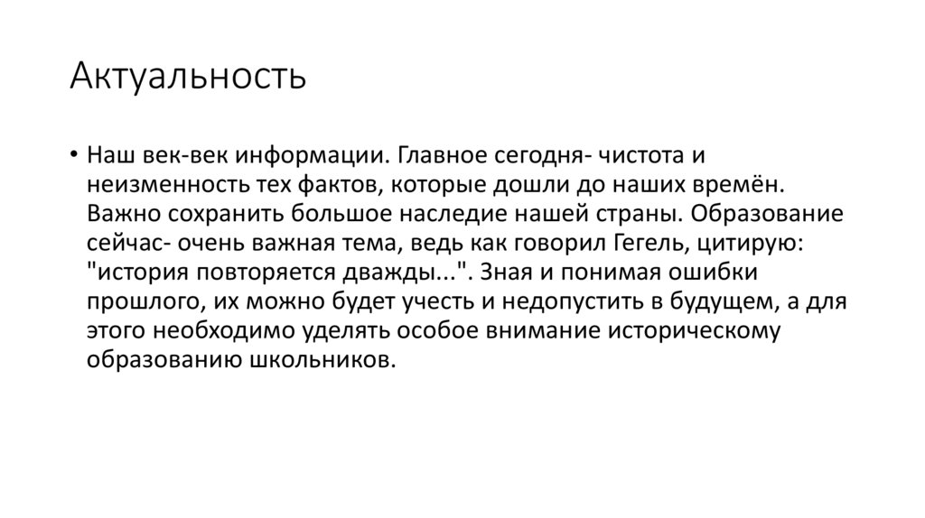 сейчас- очень важная тема, ведь как говорил Гегель, цитирую: