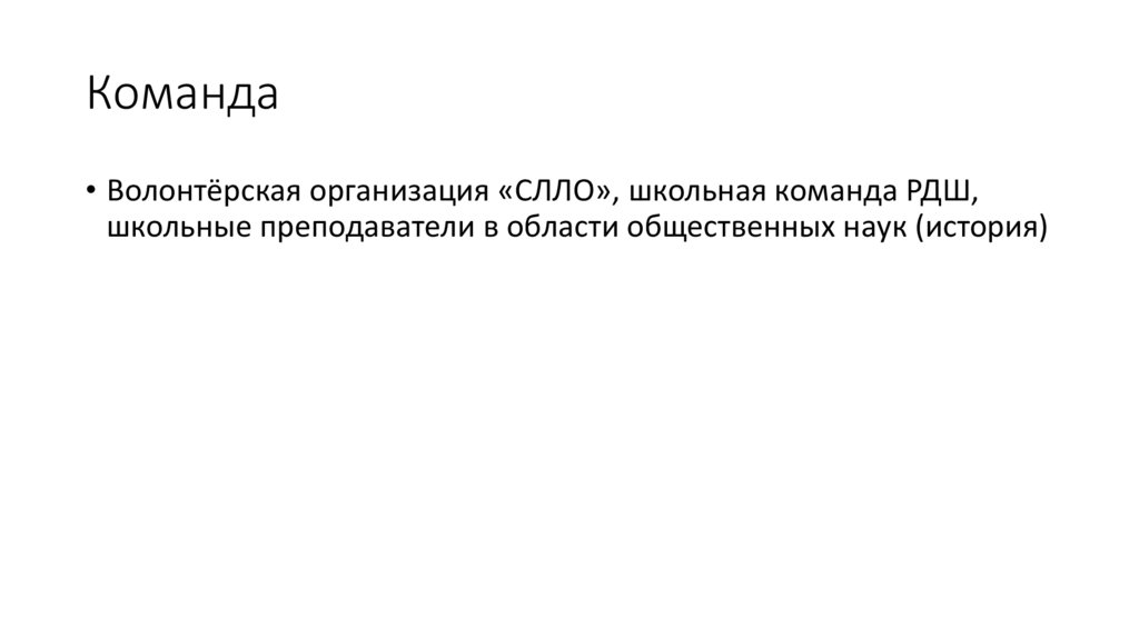 Команда• Волонтёрская организация «СЛЛО», школьная команда РДШ,