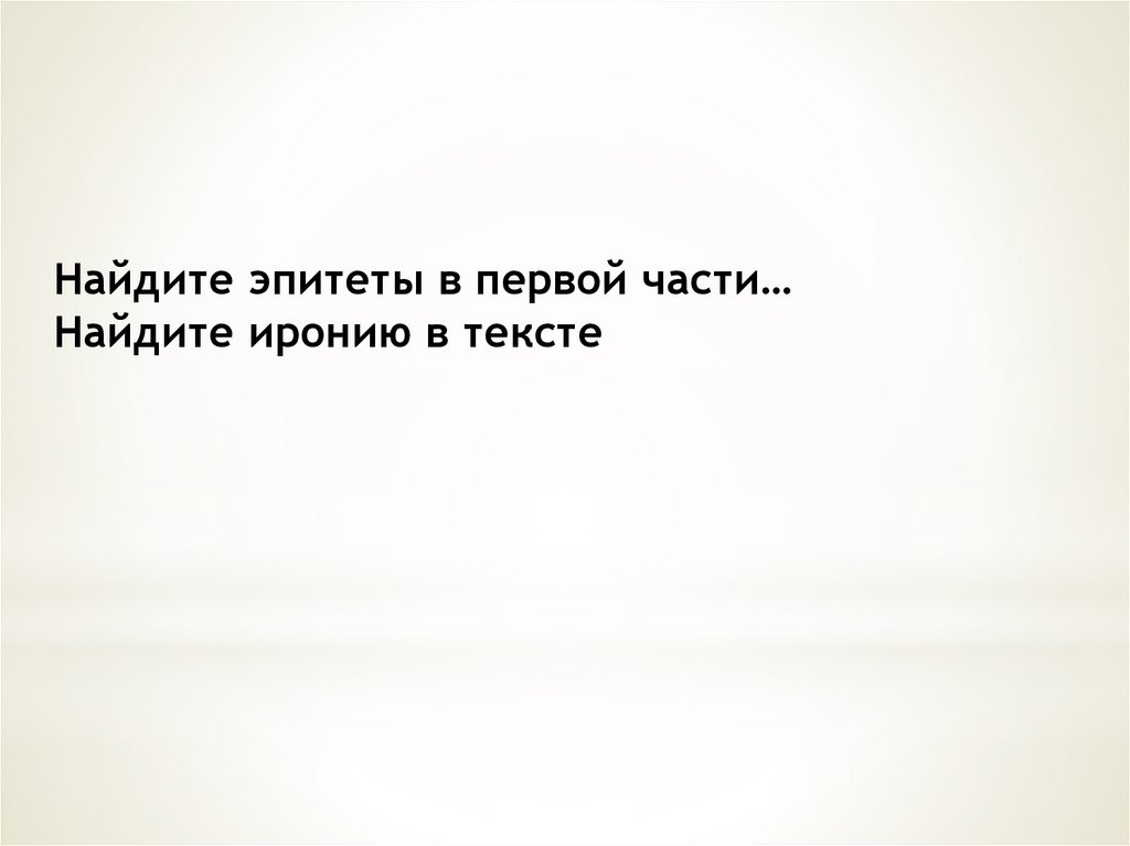 Найдите эпитеты в первой части…Найдите иронию в тексте