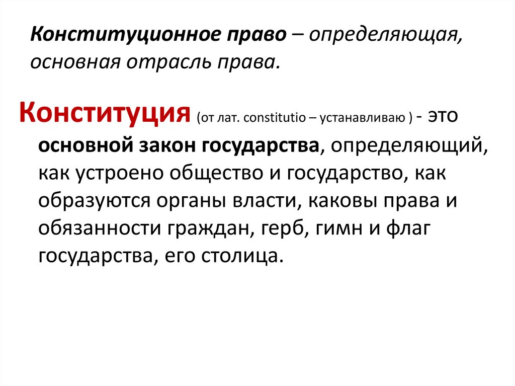 Конституционное право – определяющая,основная отрасль права.